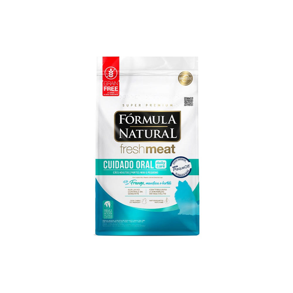 Fórmula Natural Super Premium Fresh Meat Cuidado Oral Cães Adultos Portes Mini e Pequeno Frango 1kg