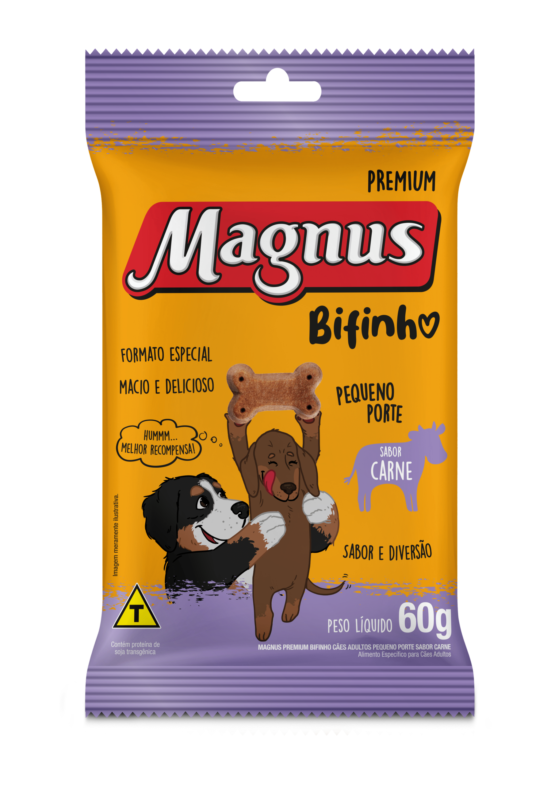 Magnus Bifinho Mastigável Pequeno Porte Sabor Carne é indicado para cães adultos de portes mini e pequeno. Aproveite os momentos de diversão e alegria com o seu melhor amigo. Ofereça para ele Magnus Bifinho.